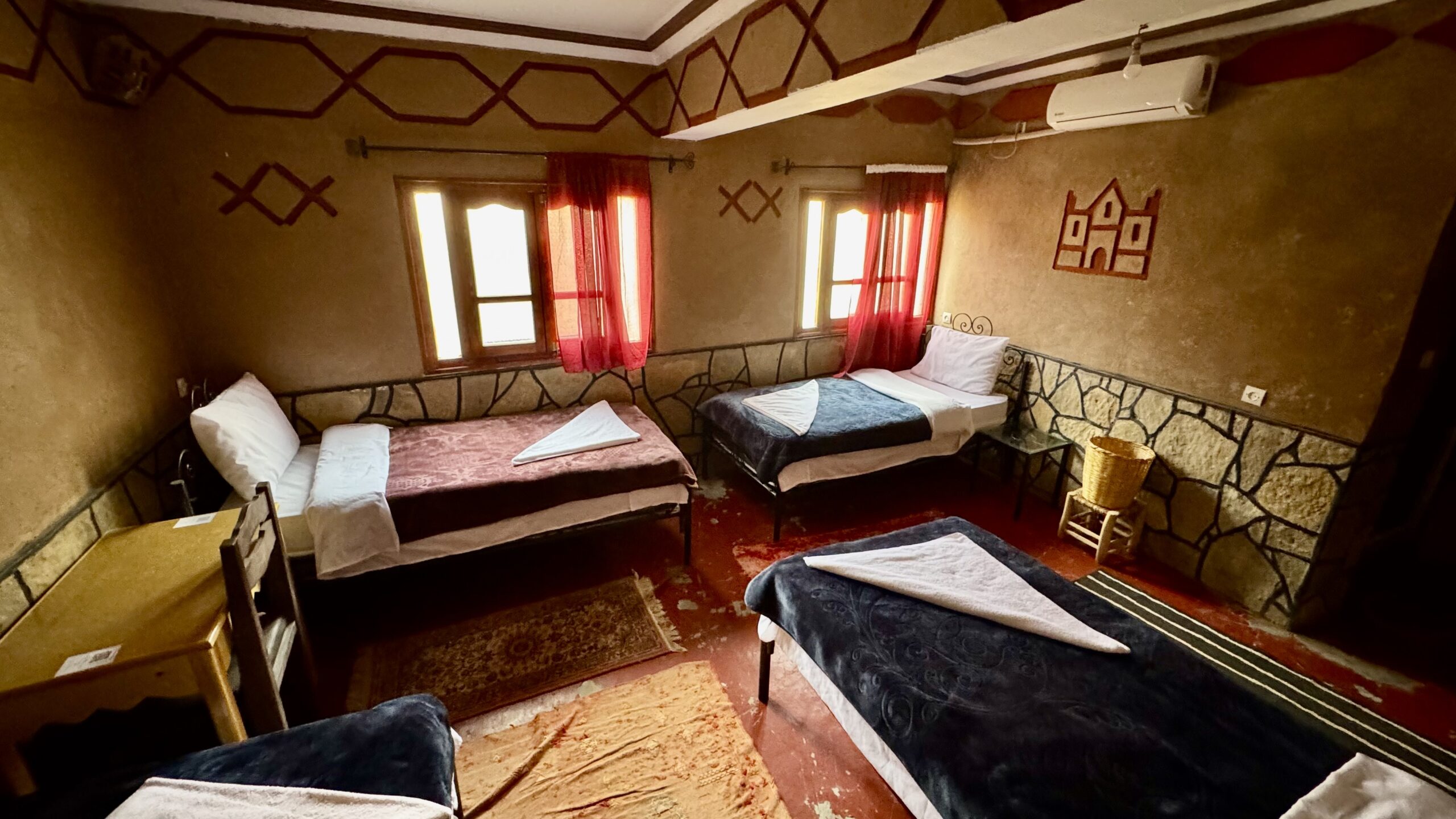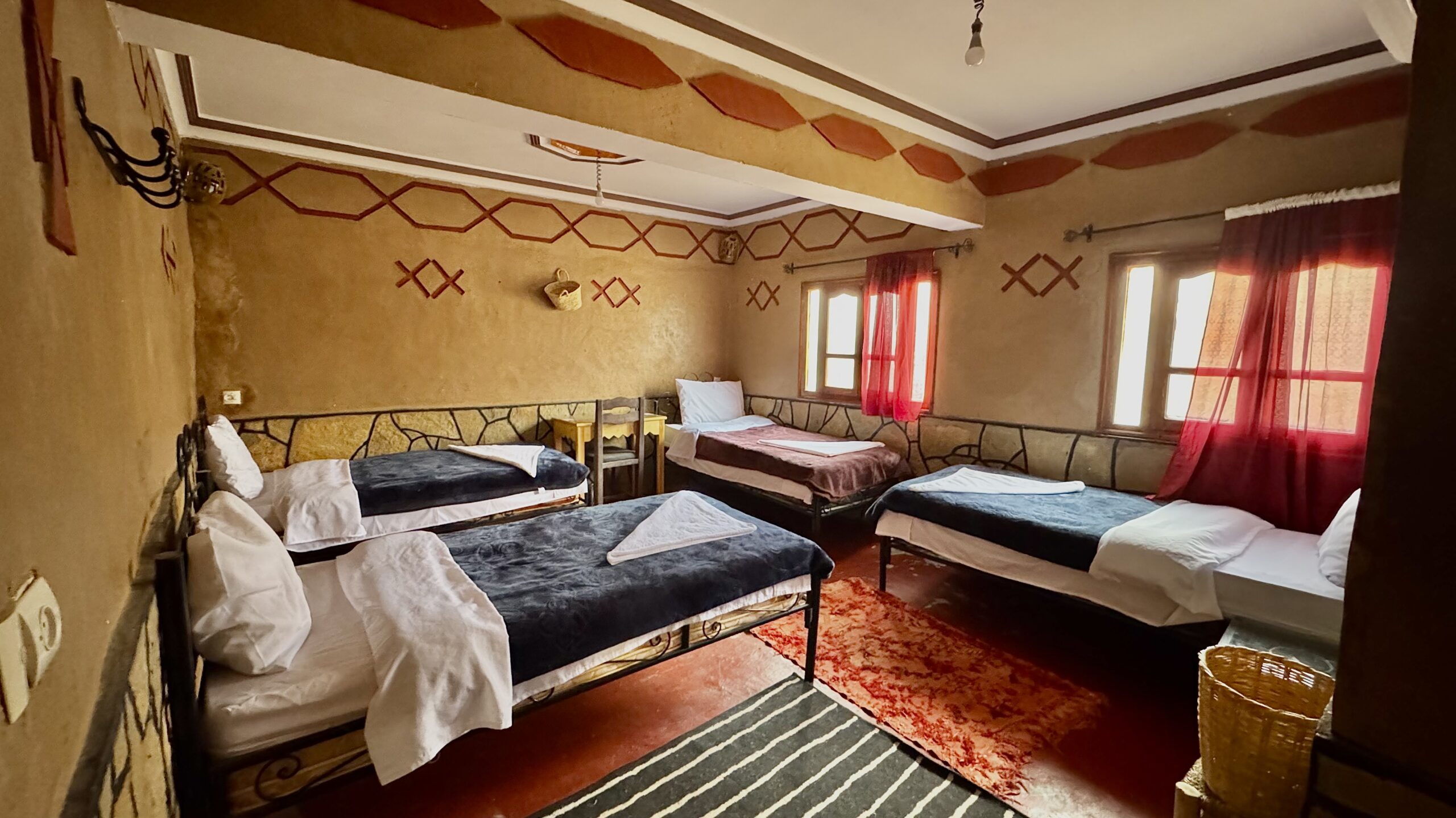 La chambre quadruple du Riad Les Jardins des Gorges de Todgha est parfaite pour les familles ou les groupes d’amis. Spacieuse et bien aménagée, elle combine confort et authenticité dans une atmosphère calme et accueillante.